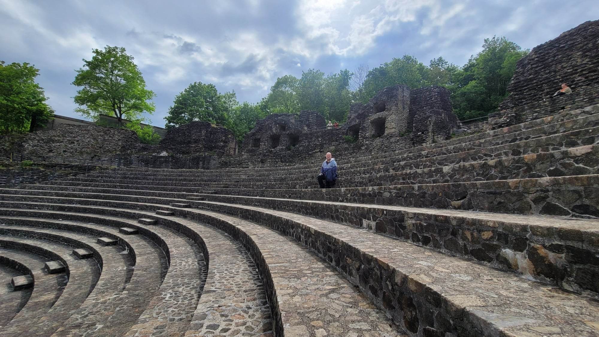 These theatres were pretty cool. It’s a bit hard to see but there are actually two. They were built around 15BC. The largest one could house 10,000 spectators. They eventually become covered over by orchards and vineyards but were rediscovered and excavated in the 1930s. They are still used for performances. We could see preparations underway today for an uncoming event.