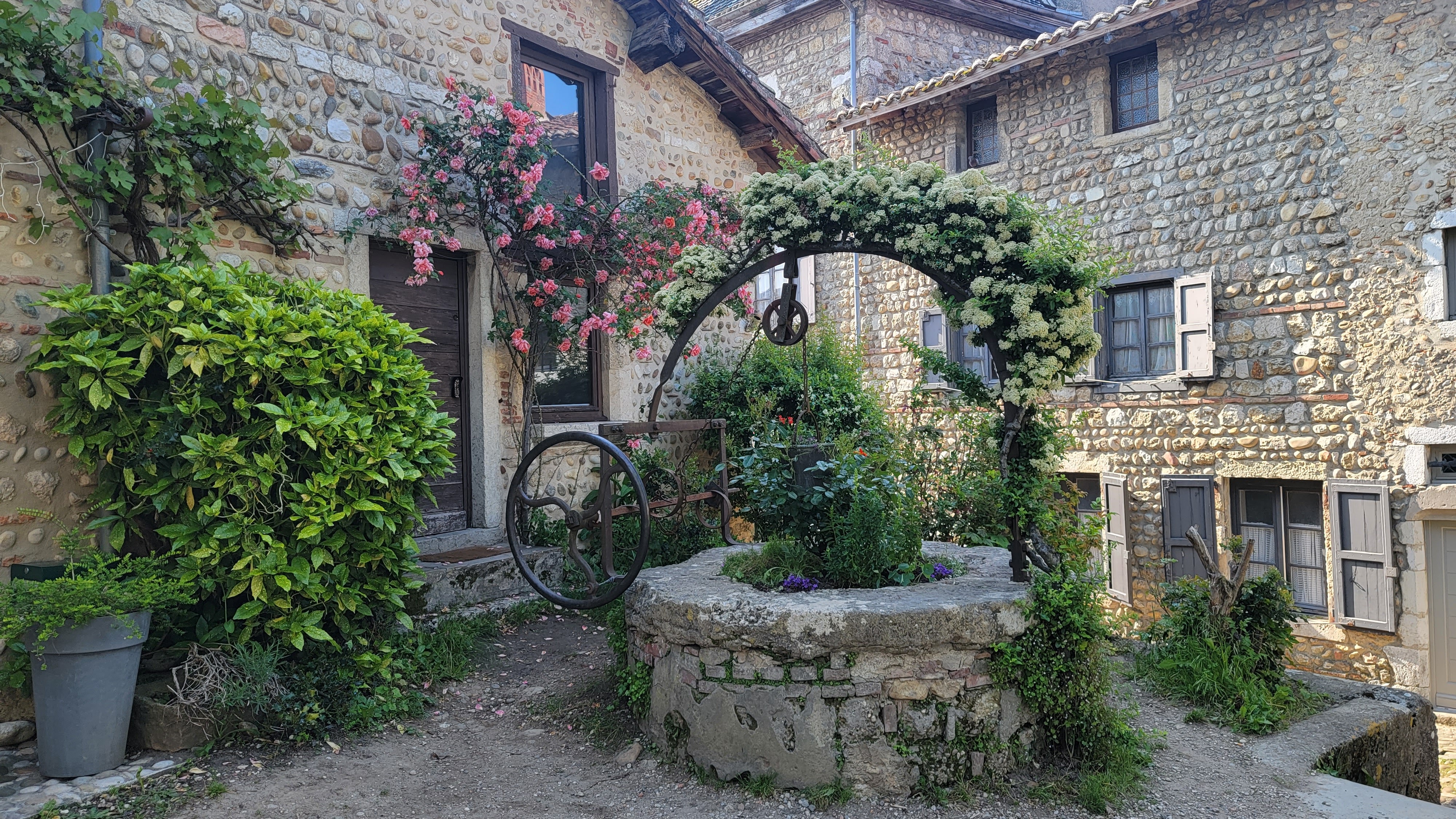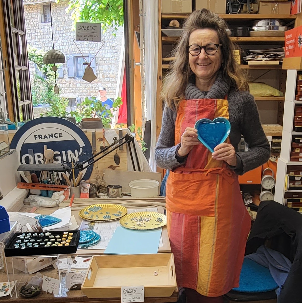 This is Saskia in her shop. She’s holding a heart “to send her love to New Zealand”. Her ceramic jewellery and other crafts were absolutely lovely, as was she. And Cite Medievale is the sweetest village ever. Ever, ever! And as well as the beautiful streets, houses, doors, windows, roses, boulangeries, patisteries and a very friendly cat – there was also a choir practising. And it sounded so lovely. Sigh.