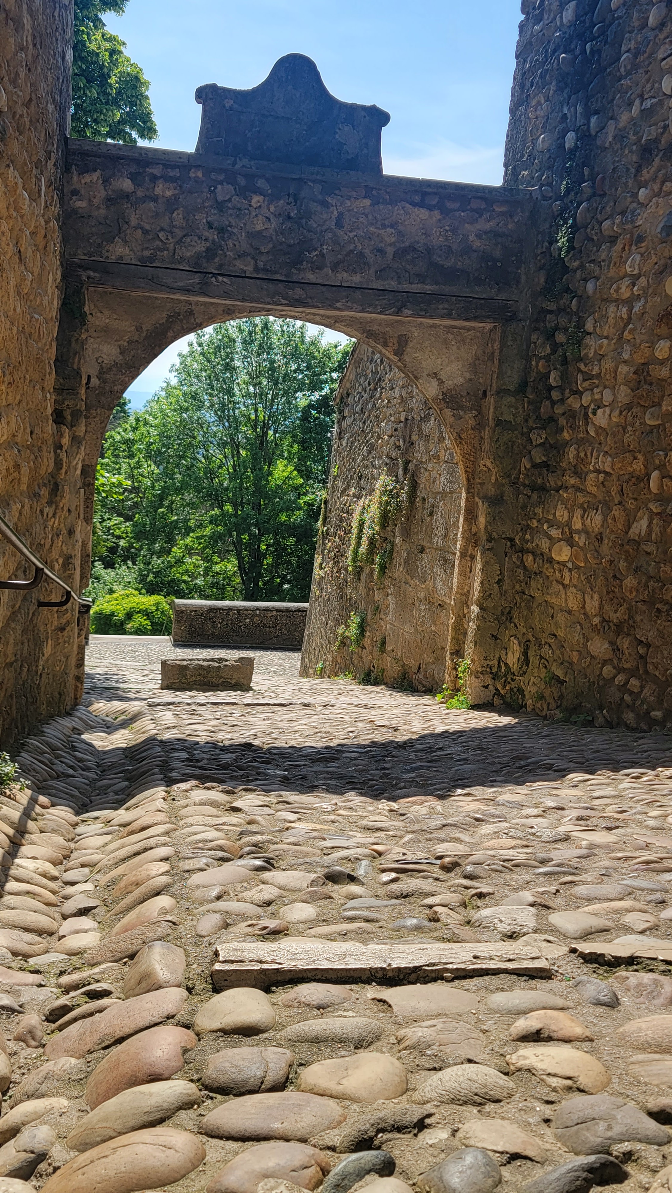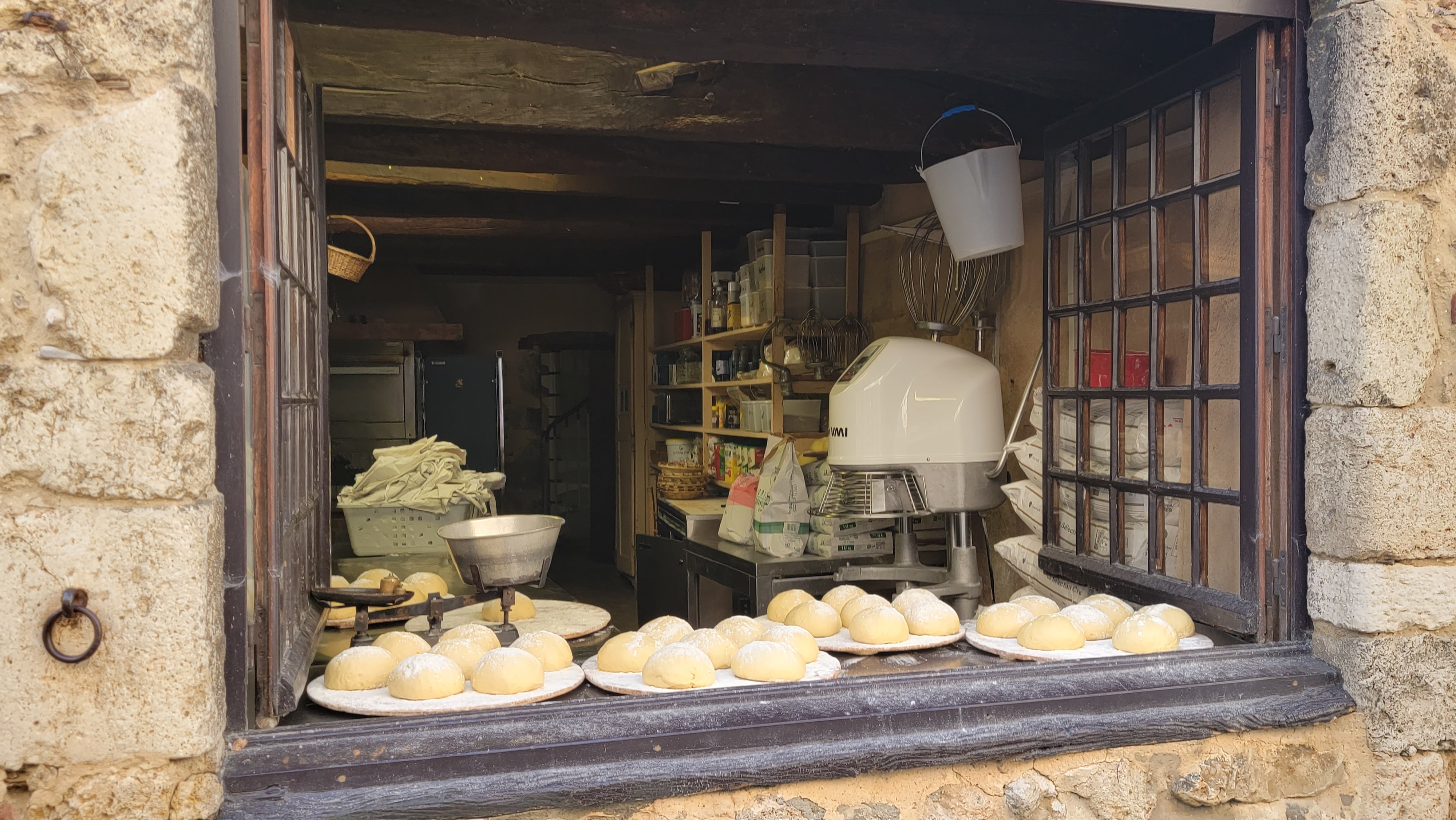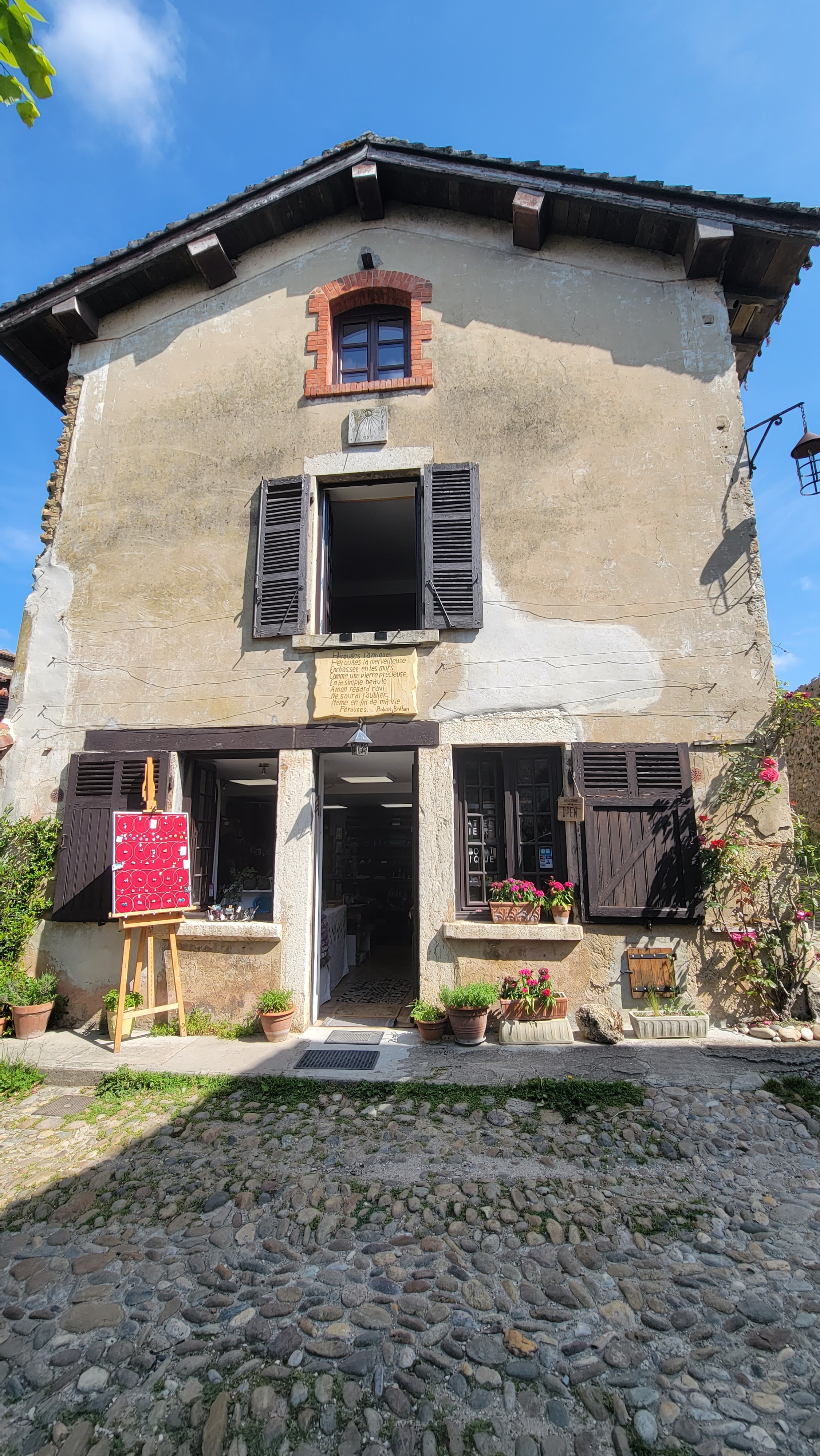 I actually started my account of today half way through it. This morning, after leaving Meximieux, we drove six minutes along the road to the medieval town of Perouges. It’s important that I tell you about this, not only because it is truly one of the most beautiful places I have seen in France so far, but also because I have decided to live here. In fact, I have found the actual house I will live in. It is Saskia’s house. She lives above her ceramics store. Her address is (and you will need this for when you come to visit me or for correspondence) Art & Design, Au Coeur de la Cite Medievale, Rue du l’or, 01800 Perouges, France. She doesn’t know that I will be living there with her and her husband yet, but we got on really well today so I’m sure she won’t mind.