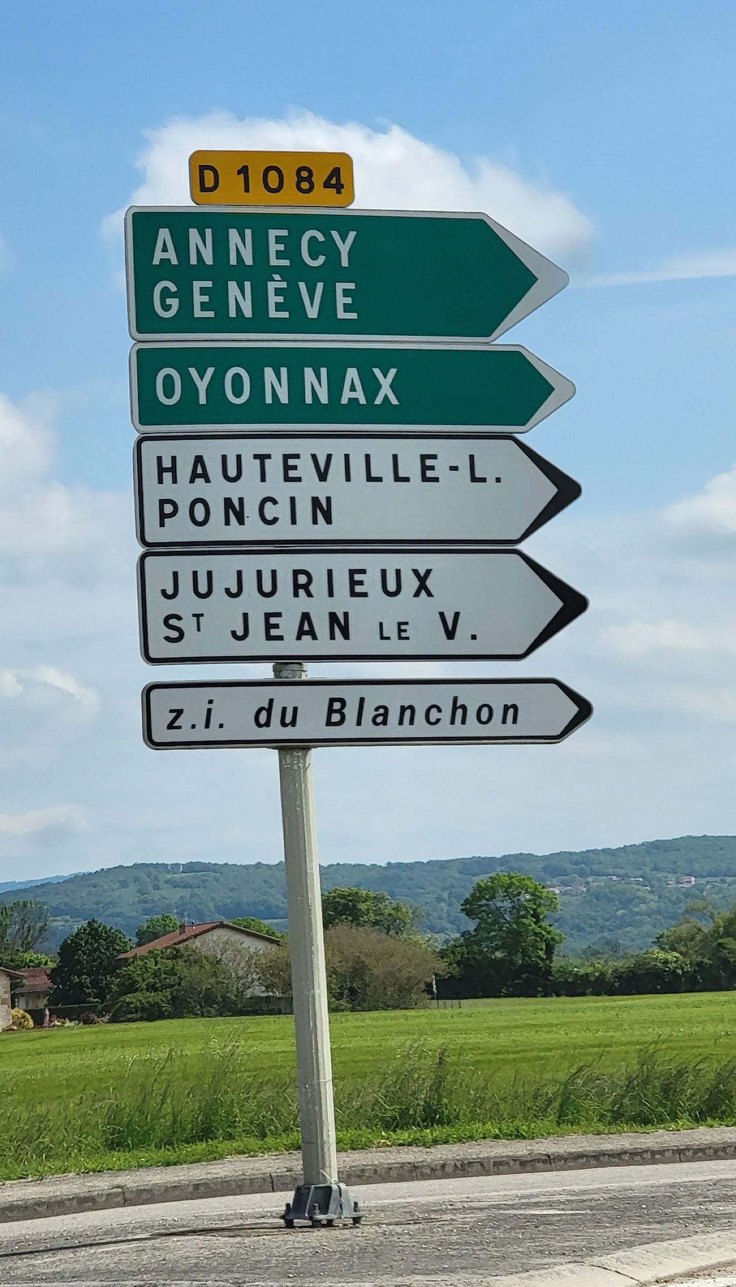… which wasn’t entirely planned. Ooops! The thing is, our rental car is only insured whilst driving within France. So what we had planned, albeit rather last minute, was to make the two hour drive eastwards towards Geneva, park somewhere close to the border and then see if we could ‘pop over’ on foot and have a wee look around – maybe at the lake and possibly around Geneva CBD. As the accommodation at our next stop, Valence, was not going to be available until 4pm, we thought it might be a good way to use the day. The weather was beautiful and we had such a lovely drive again through the countryside and villages. Until we drove on a bridge over a river and …