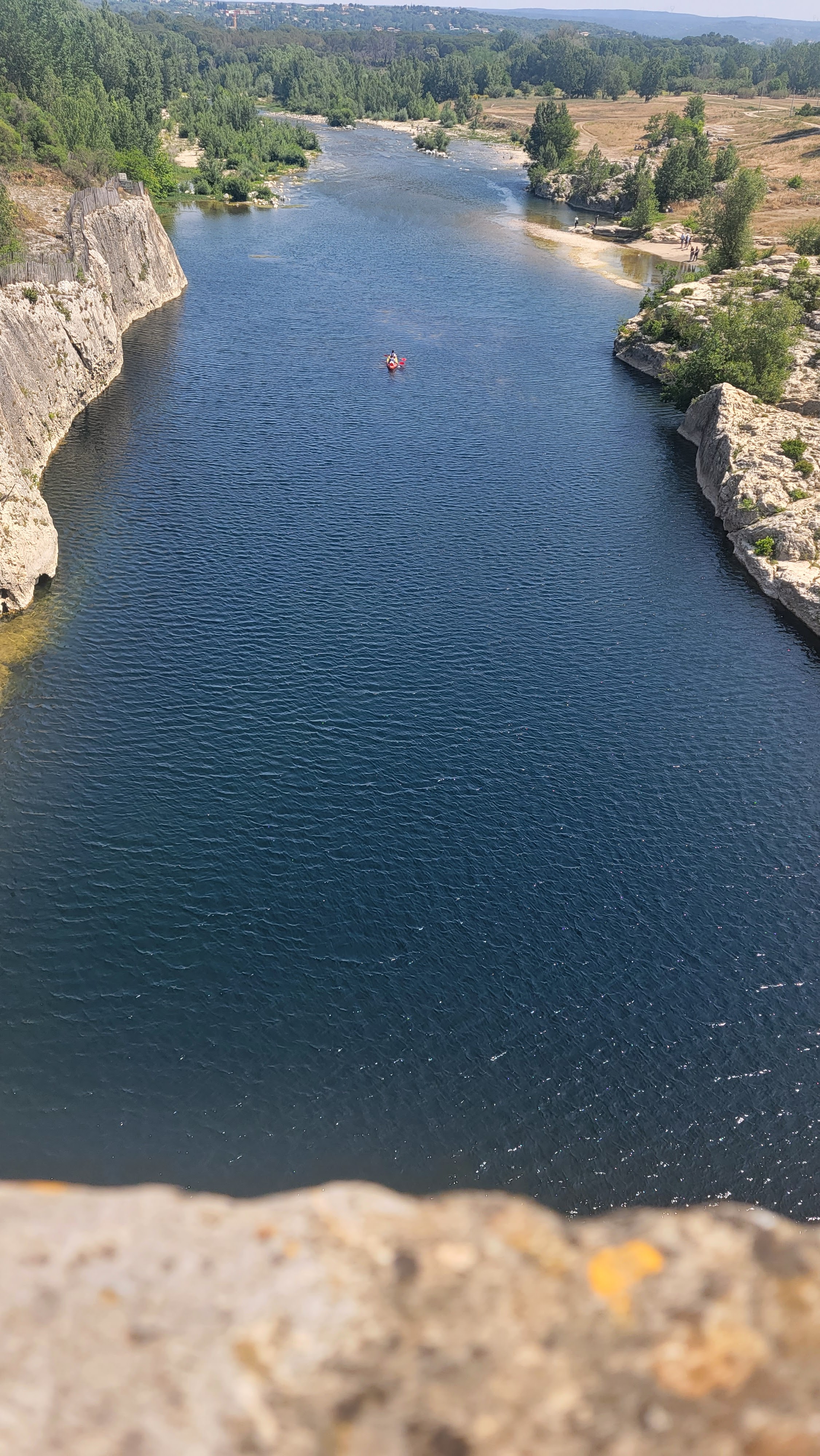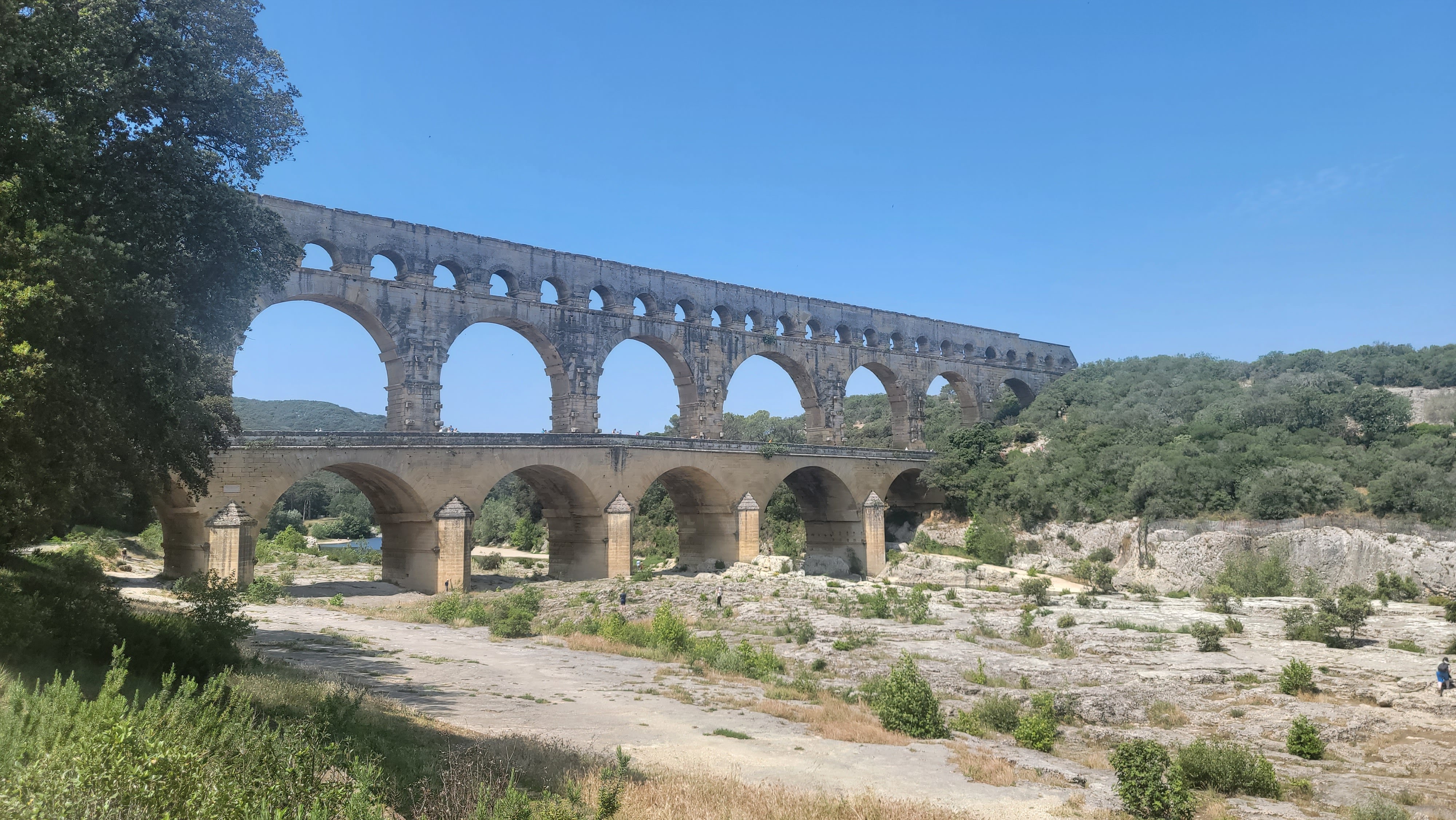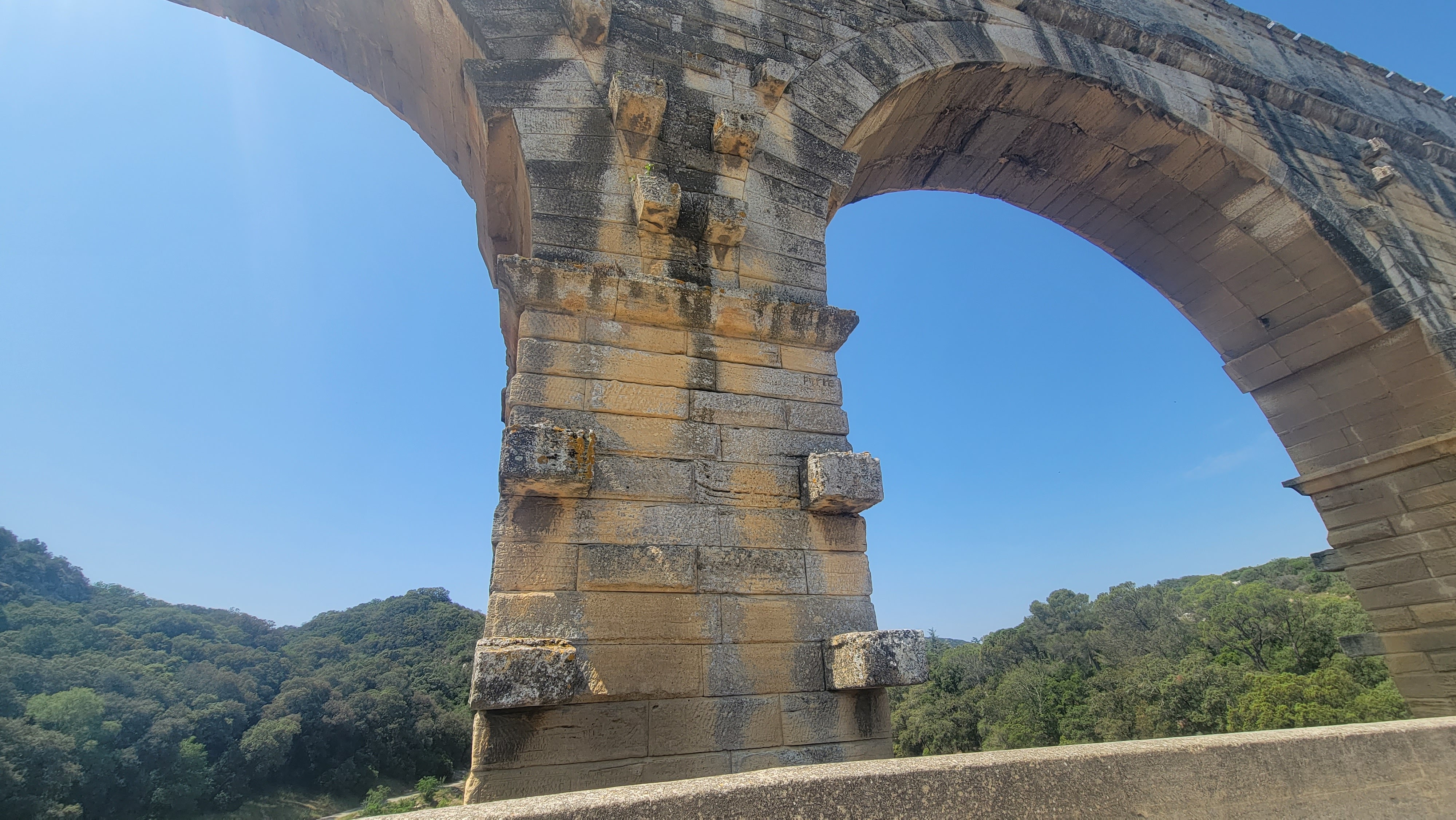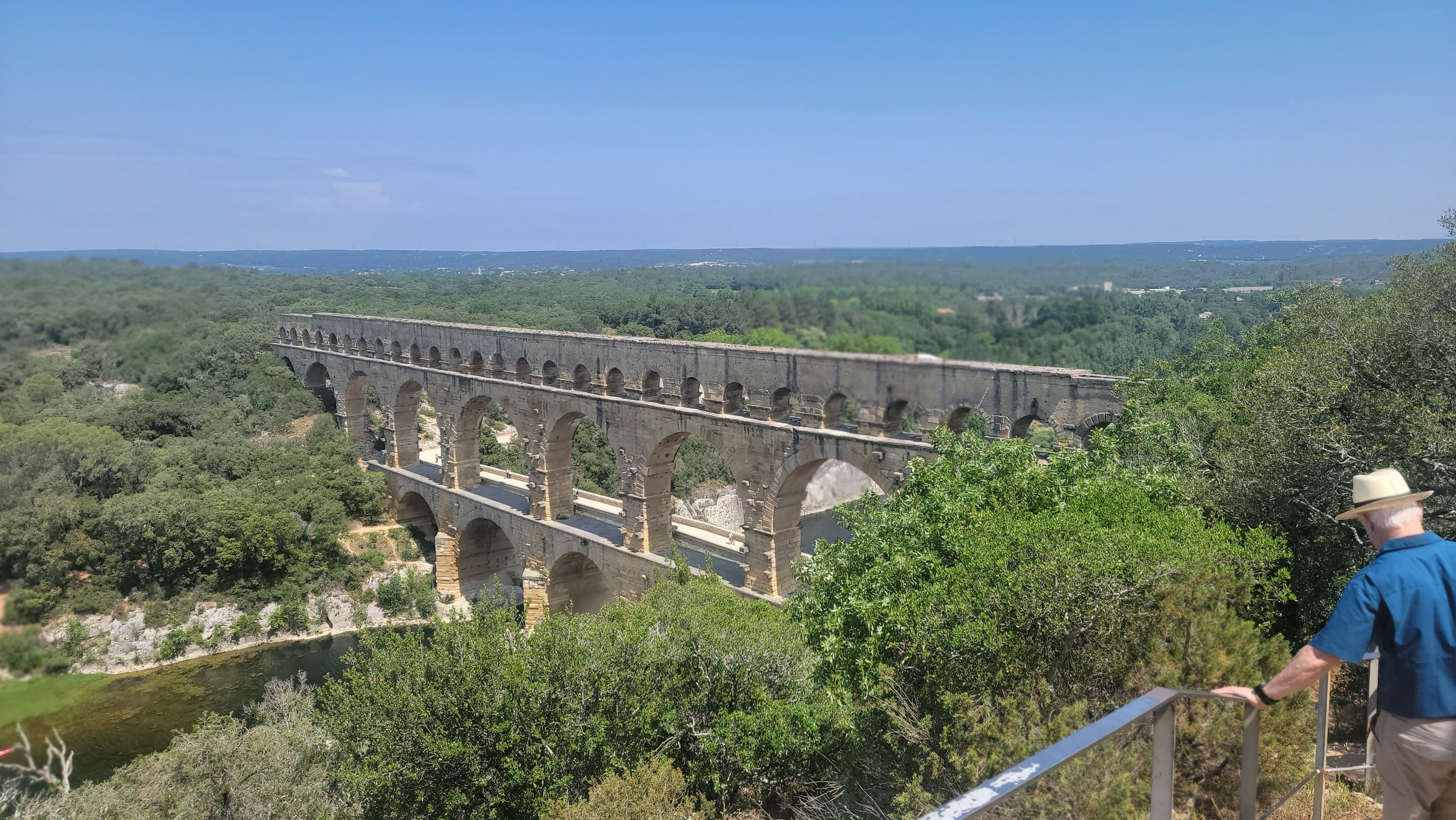 I could have sat there and done nothing else all day, and that would have been a wonderful way to end our time here. But Clive was interested to see some of what the Romans had got up to awhile back, so we drove to Pont du Gard to see the aqueduct. Clive has educated me on this . It was built to transport water fifty kilometers from a spring to the Roman colony now known as the city of Nimes. It is the tallest of all Roman aqueduct bridges (and they built a lot). Can you believe the main part of this was built in 50AD? What a feat of engineering that was when you think of the equipment they didn’t have.