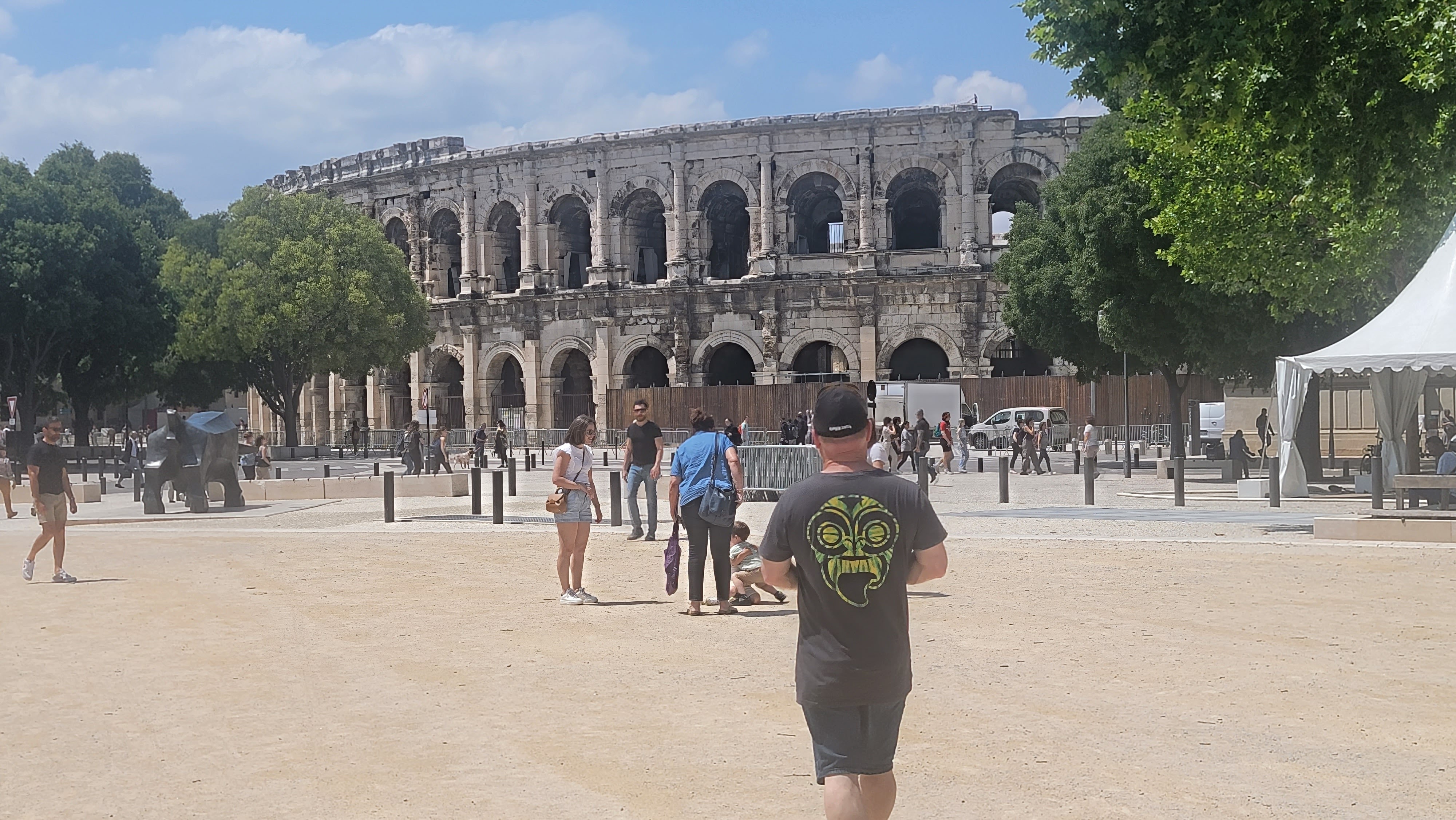 We then drove to said city of Nimes to visit the Roman amphitheatre, or “Arenes de Nimes”. Built around 100AD, it is one of best preserved Roman amphitheatres in the world. In Roman times it could hold around twenty-four thousand spectators. Best not to think too much about what went on here back in those times, but it is still used today for two annual bull fights and various concerts and public events.