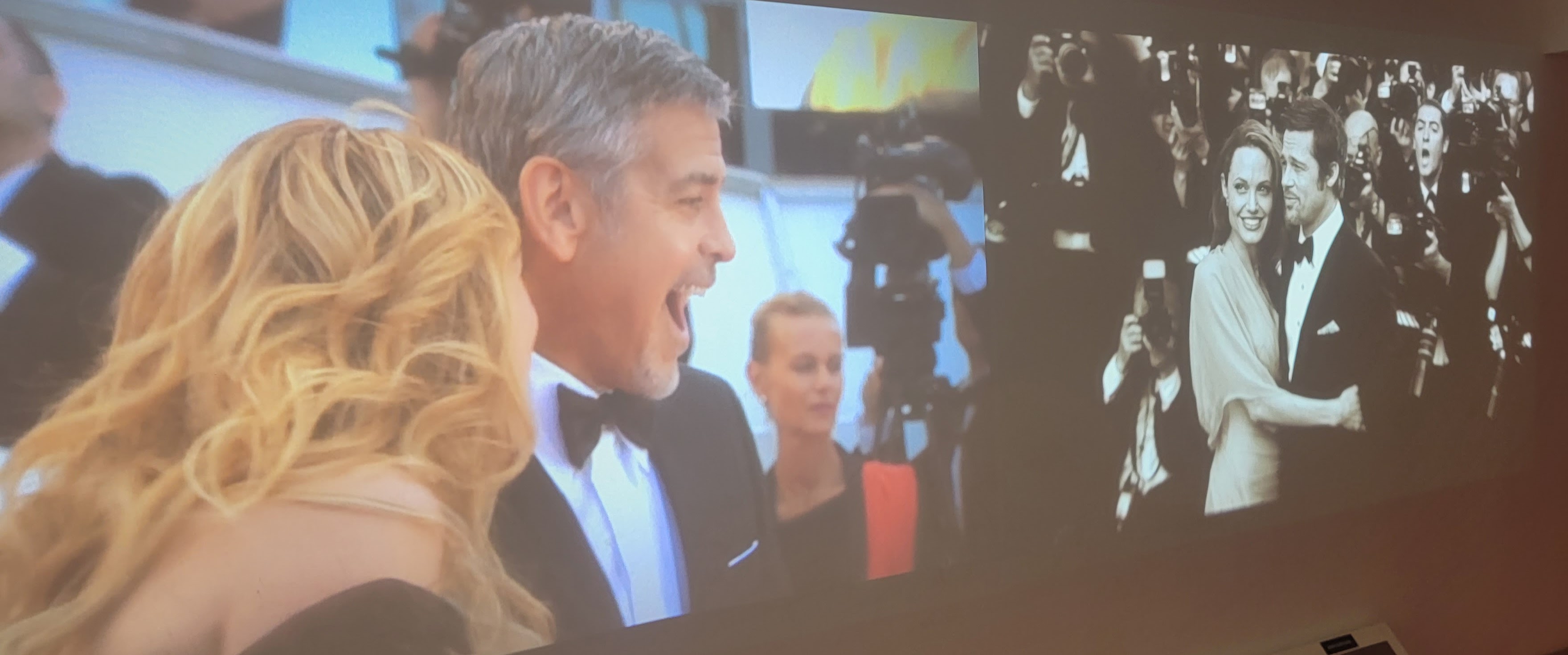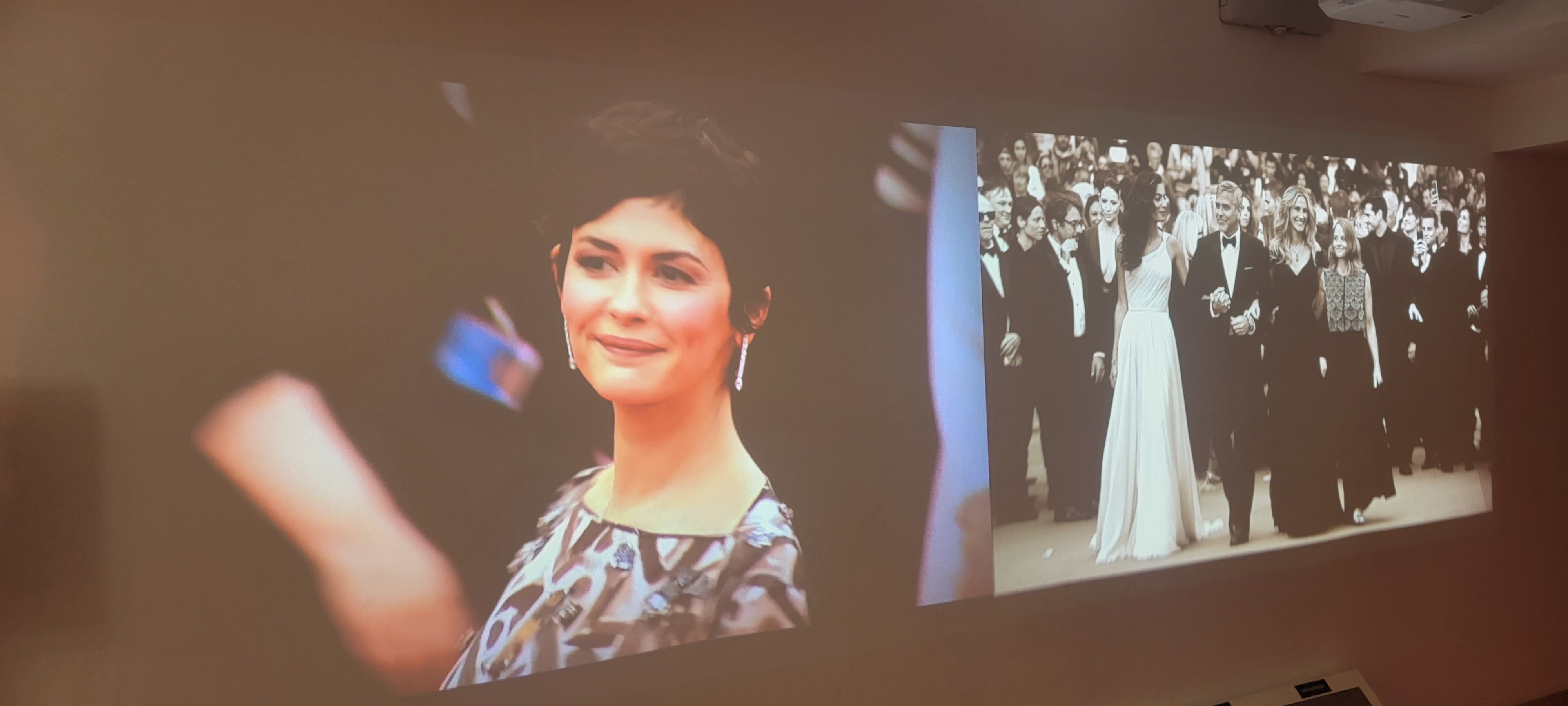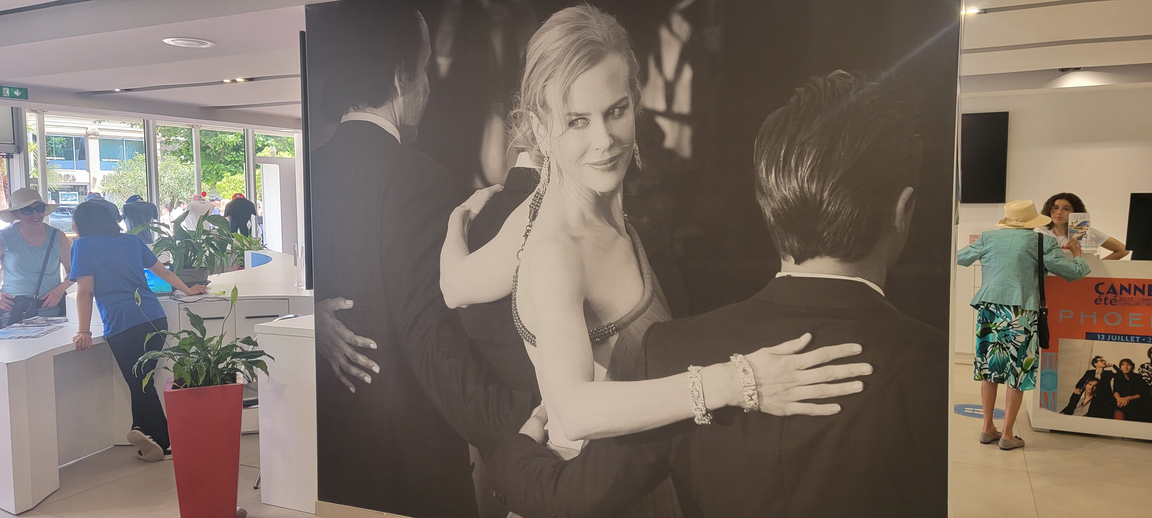 Yes, we visited Cannes today. At this time of year, with the International Film Festival just finishing up, it’s obviously been all about the glitz and the glamour. I’m pretty ignorant about such things, but it was fun to be there and see where it all goes on; where the stars of the movies have arrived to parade up that famous red carpet since 1946, adorned in their magnificent gowns or looking debonair in their tuxedos. The souvenir shop next door had snippets of festivals gone by and the walls outside the Palais des Festivals et des Congrèse also displayed photos of the stars.