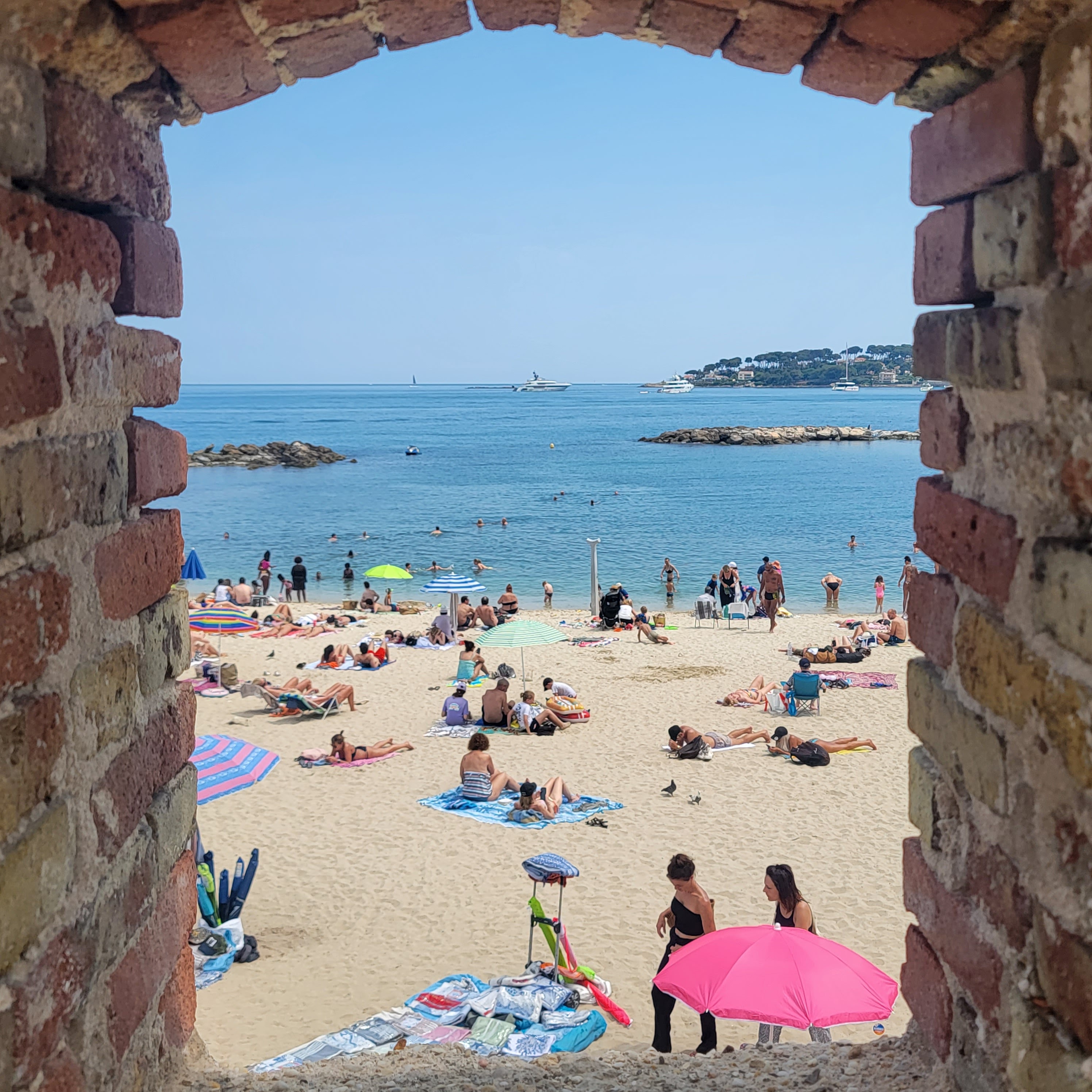 Antibes, as Durelle had told us, had much more of a quaint feel about it. It certainly wasn’t lacking in colour either though and was full of artiness – as well as some pretty flash dinghies. Antibes is a resort town between Cannes and Nice on the French Riviera or “Côte d’Azur”. Its old town area is enclosed by 16th-century defensive walls. The arrow slits in these walls provide wonderfully framed peeks out to the surrounding coast.