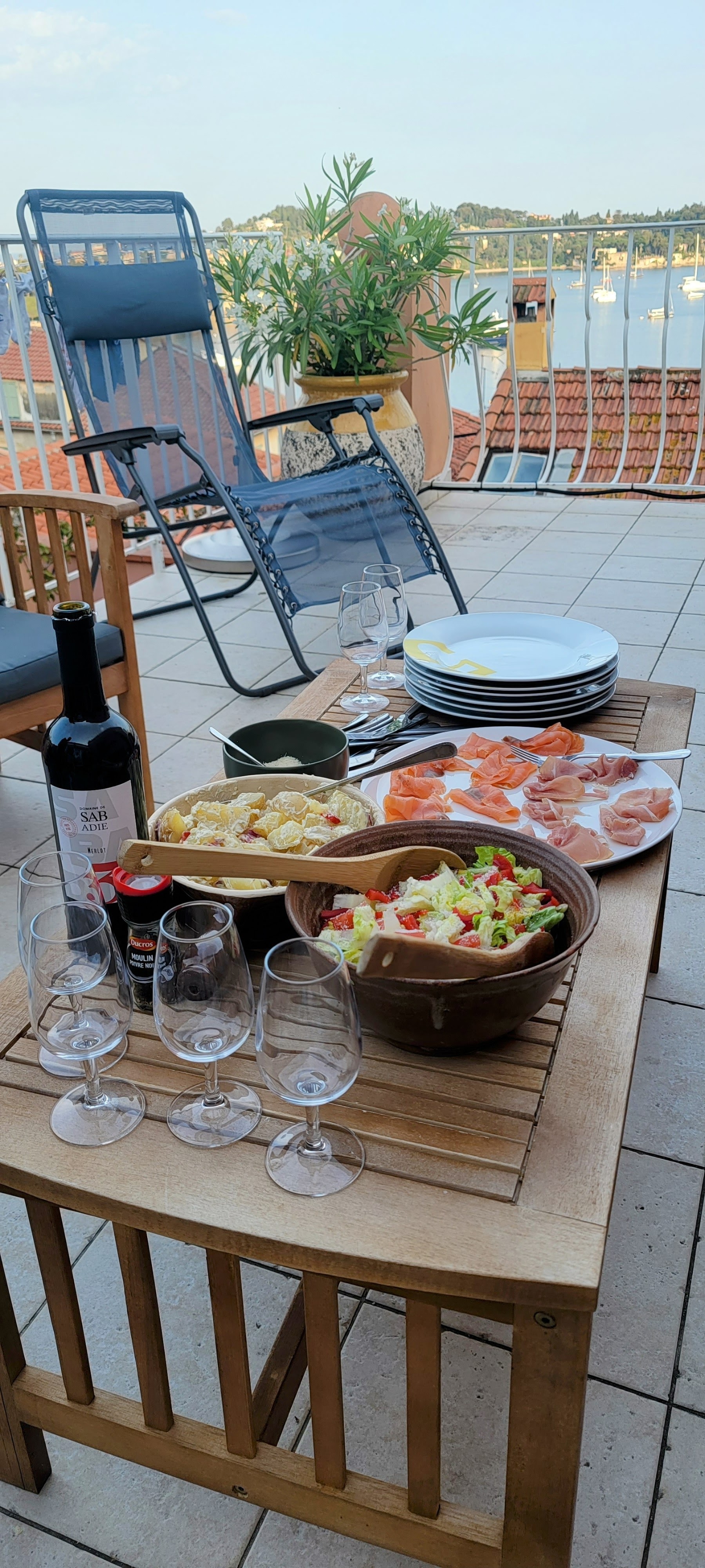 Monaco was ticked off the list. So we caught the train home (love it that they are air-conditioned!) to our lovely place in Villefranche-sur-Mer and enjoyed another wonderful meal, this time prepared by Keith and Margaret. Delicious! I guess that makes it our turn tomorrow. I wonder if they sell baked beans in France.