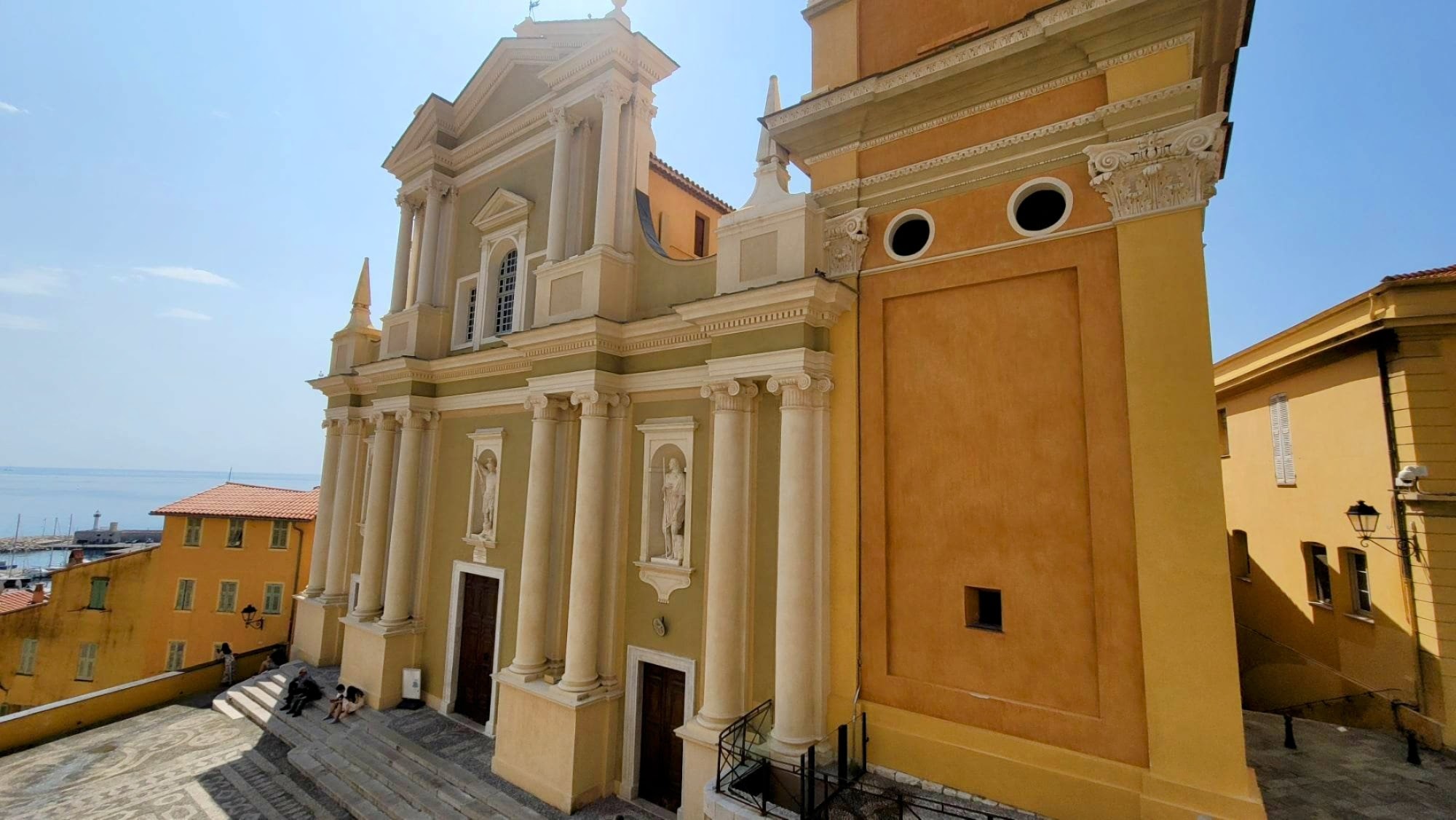 Menton, population 28,231, is the last community of the French Riviera before the Italian border. We caught the train there this morning, and walked through some of its old streets. Along the way we passed this impressive looking building.